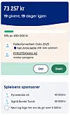 I skrivende stund står Pyroteknikk AS selv og Sigrid Bonde Tusvik for brorparten av det så langt innkomne Spleis-bidraget.Skjemdump: Spleis