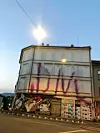 Flere signaturer, inkludert «XEQT» og «FY», pryder bygget. FY står for «forever young» og er en kjent taggegruppe.