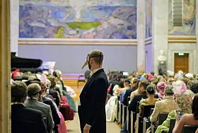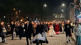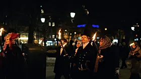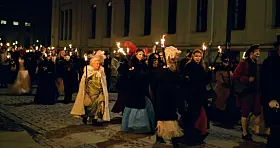 Etter konserten i Universitets aula, gikk alle 650 deltakerne med fakler til Gamle Logen ved Akershus festning