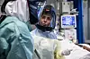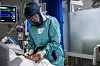Anniken "Nikki" Hars behandler en av pasientene innlagt ved covid-19 enheten på Rikshospitalet.Foto: Jil Yngland / NTB