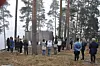 Elever fra Ringerike folkehøyskole ved minnesmerke på Utøya. Foto: Arnsten Linstad