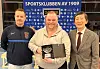 Anders "Grizzly" Fægri ble hedret for sin innsats for norsk sumobryting av klubbleder Håvard Solli Bergheim og Japans ambassadør til Norge, Hiroshi KawamuraFoto: Sportsklubben 09 bryting
