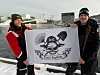Astrid Bossuyt og Are Leerstein med piratflagget. Foto: Anders Høilund