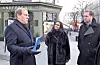 Næringspolitisk direktør i Oslo Handelsstands forening, Jon Anders Henriksen (t.v), forklarer for varaordfører Kamzy Gunaratnam (AP) og bystyrerepresentant Andreas Halse (AP), at handelsstanden i byen må kunne friste kundene med hva han kaller gode handelsopplevelser for å trekke kunder til forretningene i sentrum. Foto: Anders Høilund