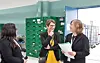 Trøen tok seg god tid til å snakke med flere av de ansatte, blant annet med Anja Moberg Fjeld som er sjef for Oliviers nettbutikk for olivenolje hos Unikum.