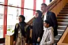 Zahra, Nora og Nilani sammen med barne- og familieminister Kjell Ingolf Ropstad. Foto: NRK