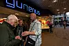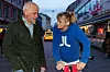 Ingvild Tveit fra Marita-kafeen var også ute. Hun er som en god samaritaner og deler ut varm sjokolade og kake i Brugata. Marita-kafeen er et tilbud for de mest slitne som trenger en matbit eller et sted å sitte. Her snakker hun med Arild Knutsen. Foto: Morten Lauveng Jørgensen
