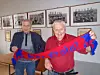 Veteranene Arne Larsen og Jan Erik "Puskas" Olsen holder skjerfet med påskriften: Ekte Oslo. På veggen henger bilder av Skeids mange mesterlag fra 50-og 60 årene. Foto: Anders Høilund