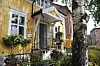 Det gule huset i Sagveien 23 er fra 1850-årene og var opprinnelig bolig for kontorsjefen på Hjula veveri. Marianne Hauge har arbeidet med blomster i 15 år og jobbet med brukskunst og antikviteter før det.