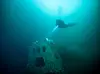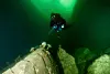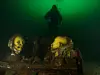 Dykkerne Rune Edvin Haldorsen og Anne Selsjord dykker ned til kameraet, som står på åtte meters dyp, og utfører noe vedlikeholdsarbeid.