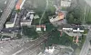 Slik var tomten, til venstre for det hvite huset midt i bildet, før trærne ble felt. Oslo Ladegård til høyre i bildet. Utsnitt av oversiktsfoto fra Reiulf Ramstad arkitekter