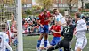 Ayoub Aleesami (i rødt, midt på bildet)header inn seiersmålet for Skeid over Arendal. Et meget viktig mål i kampen om å rykke opp. Foto: Anders Vindegg