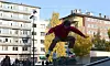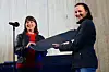 Byråd Rina Mariann Hansen overrekker et tjuvlånt skateboard til Lisa Mari Watson i organisasjonen Tverga som et symbol på at nå overtar brukerne skateparken på Colosseum torg. Foto: Morten Lauveng Jørgensen
