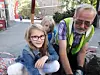 Gartner Erling Riis er en god pedagog for barna, og veileder Sarah fra femteklasse. Sarahs fadderbarn Thale er med som en slags lærling, og får holde spaden så lenge. Foto: Anders Høilund