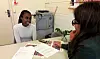 Bodil Skogstad driver butikken Mustang Sally på Torshov. Her intervjuer hun biokjemistudent Nasra Mahamud om sommerjobber. Foto: Anders Høilund