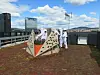 Nei, det er ikke en UFO som har landet på et tak i Bjørvika. Det er birøktere fra Biby som steller med sine kjære bier. Foto: ByBi, Roar Ree Kirkegård