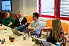 Spesialkonsulent ved bydelsoverlegens kontor i bydel Grünerløkka, Lasse Elden, og kommunikasjonsrådgiver Benedicte Nylund er brukere av Bydelsfakta. Til høyre spesialrådgiver i seksjon for plan og strategi i Byrådsavdelingen for finans, Nils Petter Strand. Foto:Morten Lauveng Jørgensen