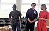 Shukri, til venstre er ferdig med videregående skole, Aden i midten er 10.klassing. Begge forteller skolebyråden hvordan de fikk sommerjobber gjennom bydel Sagene. Foto: Anders Høilund