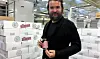 Dan Marius Nordhagen i Siste Sang med en boks av salgsuksessen Ørkensur. Foto: Anders Høilund