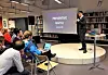 William Pearson forklarer hvordan The Ocean Bottle kan være med å redde havet fra forsøpling. Han får god respons fra elevene ved Elvebakken videregående skole. Foto: Anders Høilund