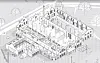 Lokomotivverkstedets sørligste hall ble bygget delvis over kongsgårdsruinene. Middelalderruinene graves frem og tilgjengeliggjøres for offentligheten. Illustrasjon: Falck og Rønneberg