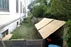 Her er alt lagt til rette for en trygg pinnsvin-oppvekst på Ila. Kvist, løv, fri tilgang på insekter og tak over hodet om det kommer regn. Legg merke til at sjaktene foran vinduene er tettet med trelemmer. Foto: Anders Høilund