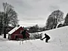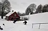 Øivind Fykse fra Bekkestua og Martin Strøm fra Majorstua utnytter det fine vinterværet og snøen som ligger hvit og lett i skråningen ned mot fotballbanen Caltexløkka.