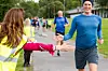 Smilet er viktigere enn farten på løperne, sa Karoline Harding før start. Her får hun et flott smil fra en av deltagerne i løpet. Foto: Kristian Velkovskij