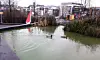 Dammen i Stålverkskroken fikk en sterk grønnfarge mandag. Tirsdag skal vann- og avløpsetaten lete videre etter en mulig lekkasje fra Hovinbekken. Foto: tips@vartoslo.no