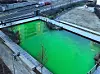 Vann- og avløpsetaten har farget Hovinbekken grønn nedenfor Marienfryd. Det er en mulig lekkasje inn i en byggegrop som må undersøkes. Foto: Anders Høilund