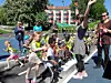 Byråd Hanna Marcussen holder åpningstalen. Barna fra Vøyensvingen barnehage venter på å få slippe til. Foto: Anders Høilund