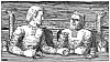 Harald og Svein sat og svalla og drakk, har kunstneren Wilhelm Wetlesen kalt denne illustrasjonen til Snorres Heimskringla.