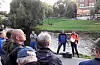 Jenny Krohn forteller Akerselvas laksfiskere om Ruskens årlige opprydninger i elva. Til venstre for Krohn, Terje Laskemoen fra bymiljøetaten Foto: Anders Høilund