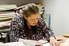Mona på tapetverkstedet monterer bøker for Møller bil hos Lønn som fortjent. Foto Kristijan Velkovskij