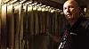 Vi blir tatt med videre innover i dypet. Kittilsen viser vei gjennom en smal, grå gang. I noen reoler ligger lampeglass.