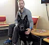Politihunden Figo er sykemeldt etter en ryggoperasjon. Nå skal stingene tas, og Figo og kameraten Eirik sitter på venteværelset og synes tiden går ganske sakte. Foto: Anders Høilund