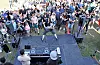 Mellom slagene høres musikk fra en del av området som vanligvis pleier å være stille, folk stimer til. Det viser seg at det arrangeres NM i luftgitar på festivalen.