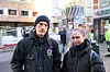 Christoffer Røed og Elise Duus Molven på plass i Brugata. Der gir de opplæring i bruk av den livreddende medisinen Nalokson. Foto: André Kjernsli