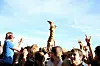 En crowdsurfer er i ferd med å gå inn for landing. Foto: André Kjernsli
