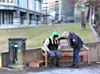 Trivselsvekterne er på plass og sier de har blitt godt mottatt i det åpne rusmiljøet. Foto: André Kjernsli