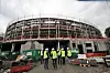 Sånn ser Jordal Amfi ut fra sørenden akkurat na. Ståldragere og lett-tak er på plass. Og man får et inntrykk av hvor flott det blir. Foto: André Kjernsli