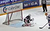 Tobias Lindstrøm ser langt etter en puck som stryker utenfor tidlig i kampen. Foto: André Kjernsli