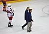 Roy Johansen og Espen Knutsen pa vei inn i garderoben for å pønske ut noe som kan snu kampen. Foto: André Kjernsli