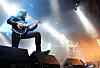 Det ble ikke spart på pyroeffektene til tross for at sola sto midt på himmelen. Foto: André Kjernsli