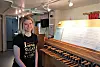 Klokkenisten Laura Marie Rueslåtten inne i klokkespillet. På t-skjorten hennes står det: "I solemnly swear that I am up to no good". VårtOslo tipper byens befolkning er uenig. Foto: André Kjernsli