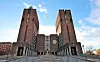På toppen av det østre tårnet (til venstre i bildet) ser vi klokkespillet. Foto: André Kjernsli