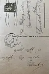 Julekortet er limt inn i dagboken og er trolig fra artikkelforfatterens far. Ettersom han lå i dekning underskrev han med pseudonymet «Pedanten». Han må ha hatt etterretningen i orden fordi kortet er adressert til familiens fremtidige adresse i Camilla Colletts gate, men de var ennå ikke flyttet dit.Foto: Janne Wilberg