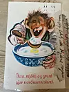 Dette grøttrollet prydet forsiden på postkortet fra min far, det er limt inn i dagboken.Foto: Janne Wilberg