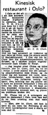 Allerede i 1939, kun to år etter ankomsten til Norge, var Chen Te Hu godt i gang med forretningsdriften. Kilde: Aftenposten 7. oktober 1939 via Yenyin Kwan