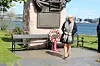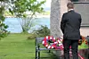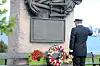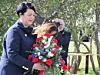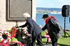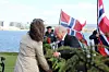 To slektninger av ofre fra første verdenskrig la ned blomster på hornminen – minnesmerke etter drepte sjøfolk i første verdenskrig. Foto: Hans Magnus Borge